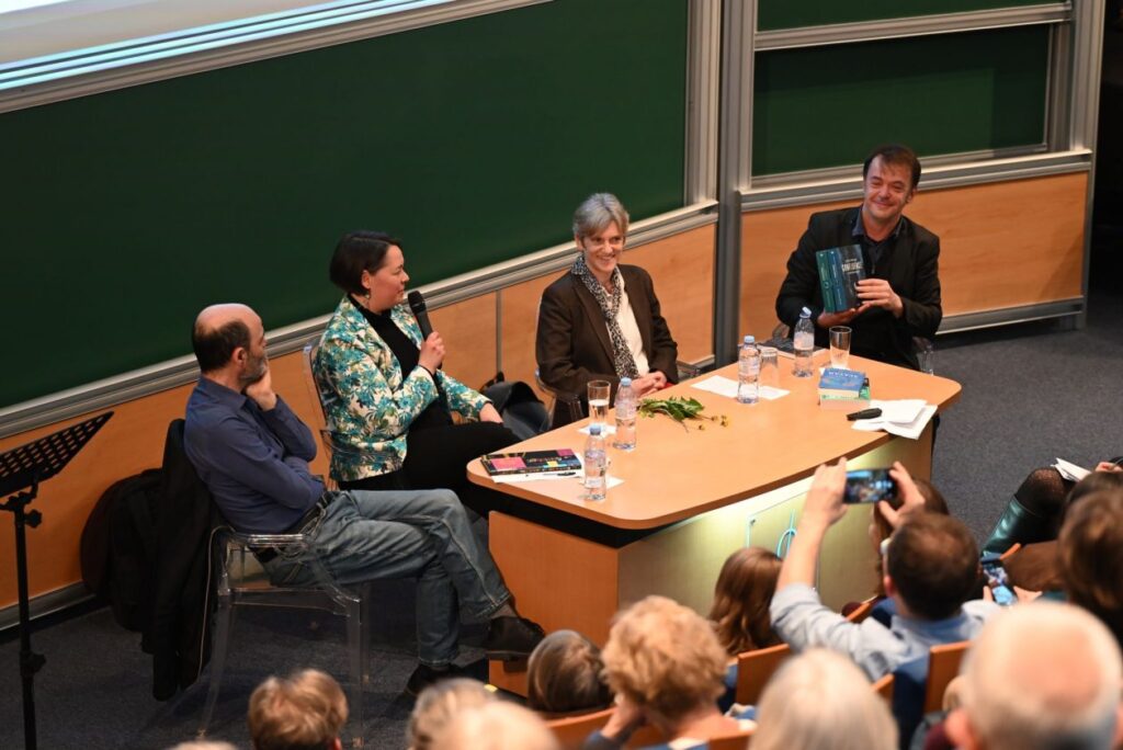 Le 2 avril dernier, nous avons eu l’immense honneur (si si, toute galvaudée qu’elle puisse paraître, c’est la bonne formule) d’animer une table ronde à l’IHES, de surcroît sur un thème passionnant (si si, jugez-en plutôt : « Femmes, sciences et imaginaire : comment susciter les vocations à travers la littérature ? »). Les intervenant.es n’étaient autres qu’Élise Coline, auteure d’Échos d’en haut (Sérendip’éditions, 2025), Sylvie Poulain et Roland Lehoucq. Le fantôme du mathématicien Alexander Grothendieck, dont nous lisons actuellement l’incroyable Récoltes et semailles (plus de 1 000 pages dans le format en coffret proposé par les éditions Gallimard) nous a paru d’autant plus hanter le lieu que la dernière fois que nous nous sommes rendu dans l’auditorium de l’IHES, c’était en février 2025 pour assister à une table ronde organisée à l’occasion du 10e anniversaire de sa disparition, sur la manière dont il inspirait des écrivains (pour en savoir plus sur cette table ronde, c’est par ici).