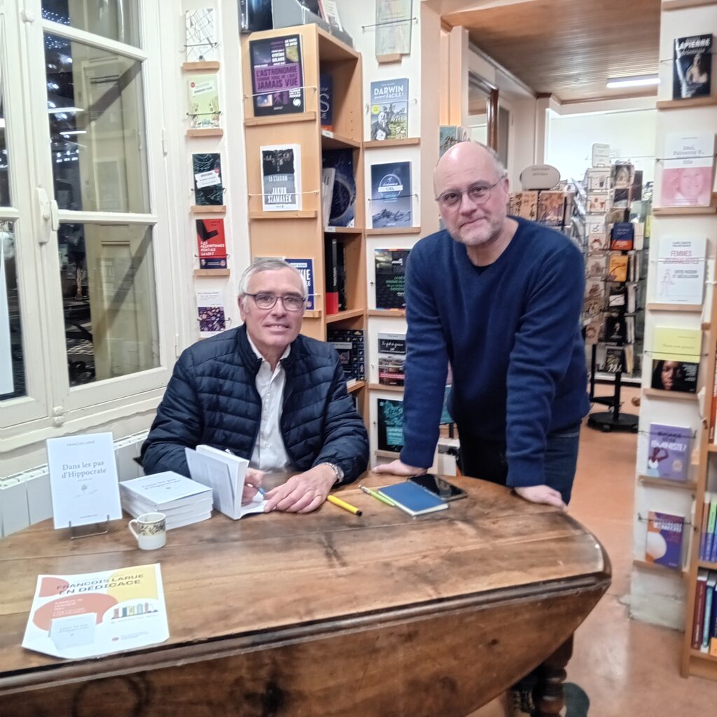 Merci à elle – et à Patrice en particulier (à droite sur la photo) – pour cet accueil qui permit à plusieurs personnes de revoir celui qui fut leur médecin ou leur collègue, sans oublier les amis et proches venus également nombreux pour célébrer comme il se doit l’événement – c’était la première séance de dédicace de François Larue qui, avec Dans les pas d’Hippocrate, signe son premier livre.