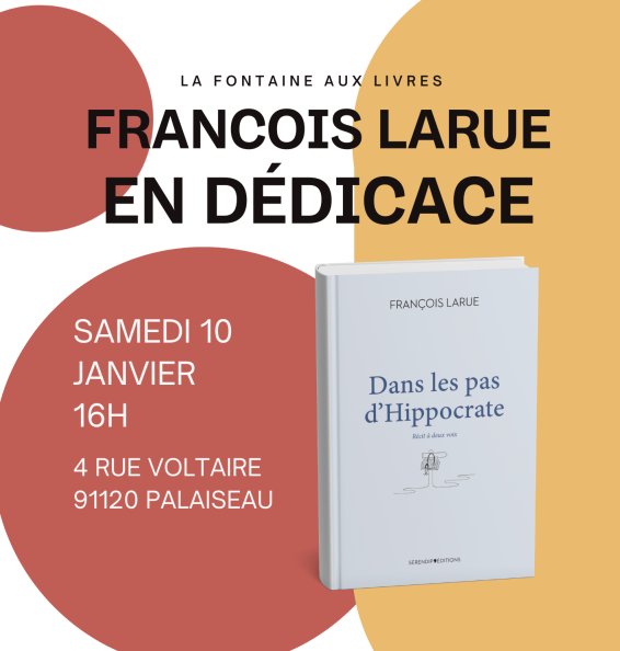 La librairie La Fontaine aux Livres nous fait l’honneur d’accueillir François Larue, l’auteur du « récit à deux voix », Dans les pas d’Hippocrate, pour une séance dédicace.