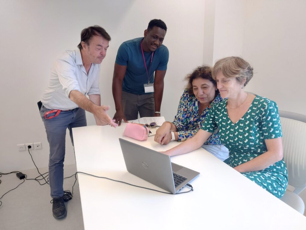 En illustration : de droite à gauche : Élise Colin, Fatma Tajani (Communauté d’agglomération de Paris-Saclay), Aboubacar Maiga (Lumen) et nous-même, en pleine préparation de la séance du 18 septembre prochain !